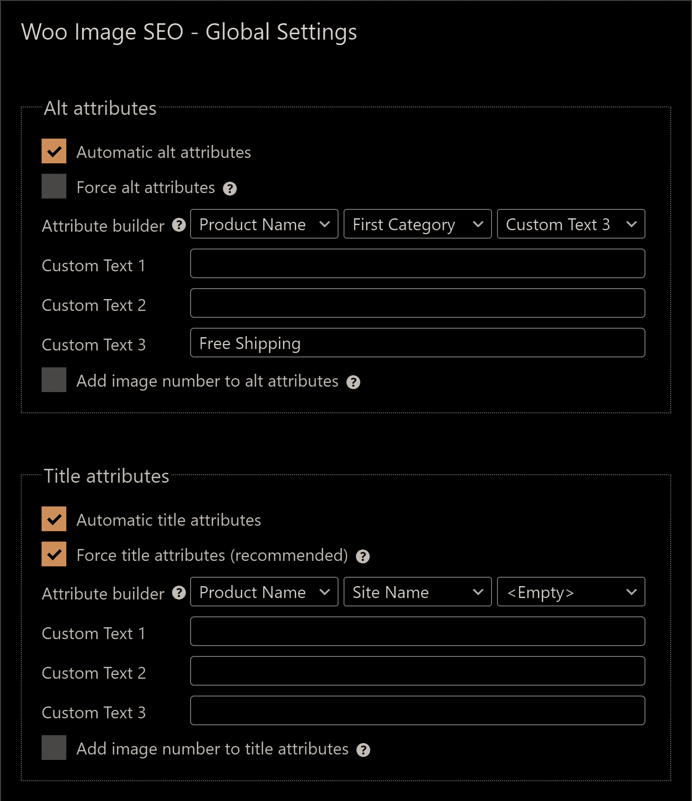 Fine-tune the plugin to fit your needs.While the default plugin settings work for most websites, there are several options available to configure the plugin to your liking. Get granular control over the results with separate settings for alt and title attributes, including: